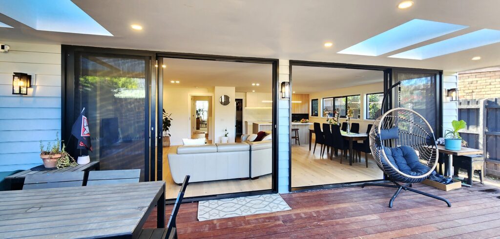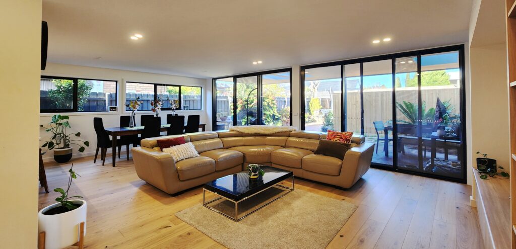 Patrick and Veronica called Attic Group to give their home a complete make over, and the difference is amazing. A redone master bedroom with en-suite, a brand new kitchen, enormous lounge and dining area surrounded by large windows and glass sliding patio doors, an office/bedroom and a new laundry. Upstairs a common room for the kids, a light filled bathroom and two good sized bedrooms.